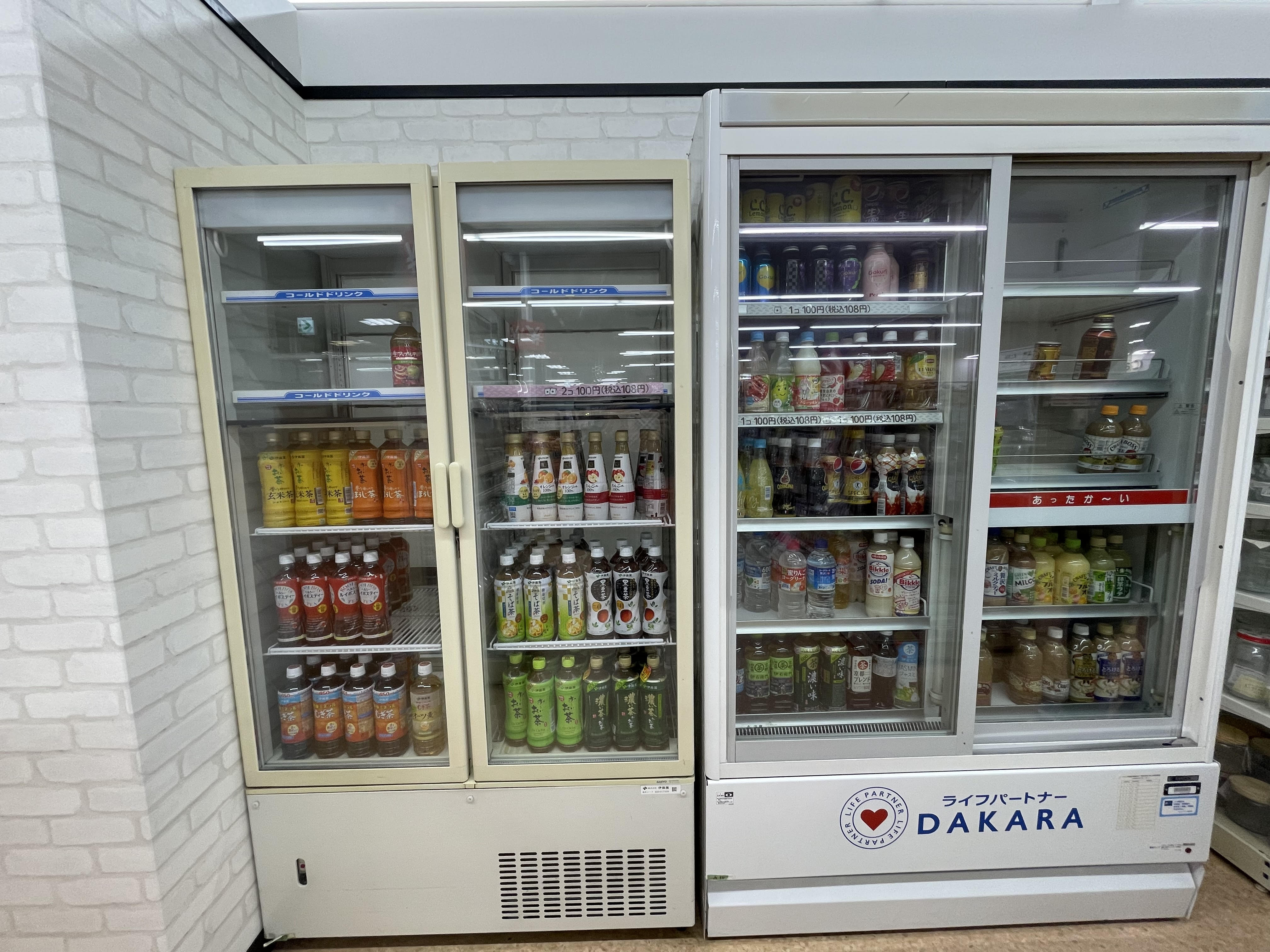 ペットボトルの飲み物も非常に充実しており、お茶からジュース、コーヒーまでさまざまな種類のペットボトル飲料水が常備されています。